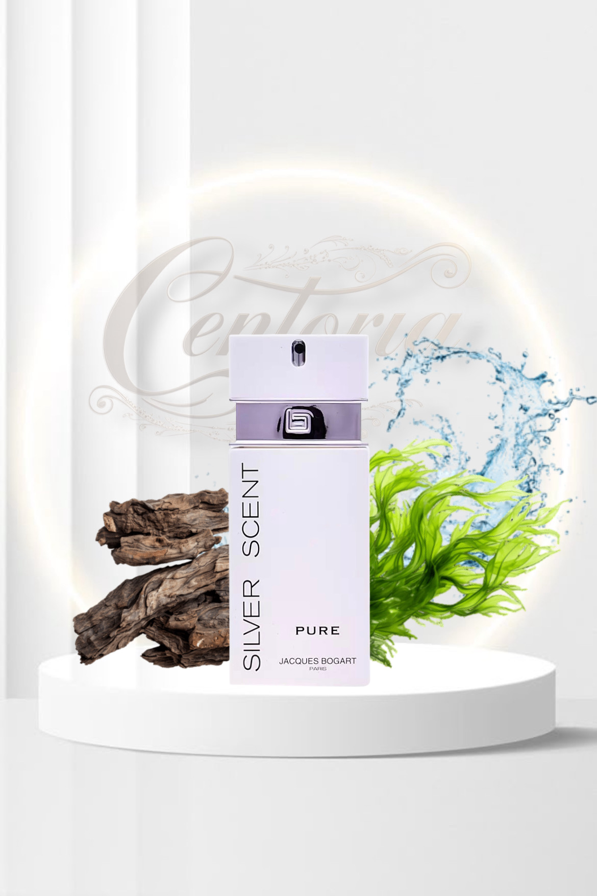 بطری سیلور سنت پیور اماراتی با طراحی سفید و نقرهای رنگ، تداعیکنندهی حس پاکی و انرژی مثبت است.